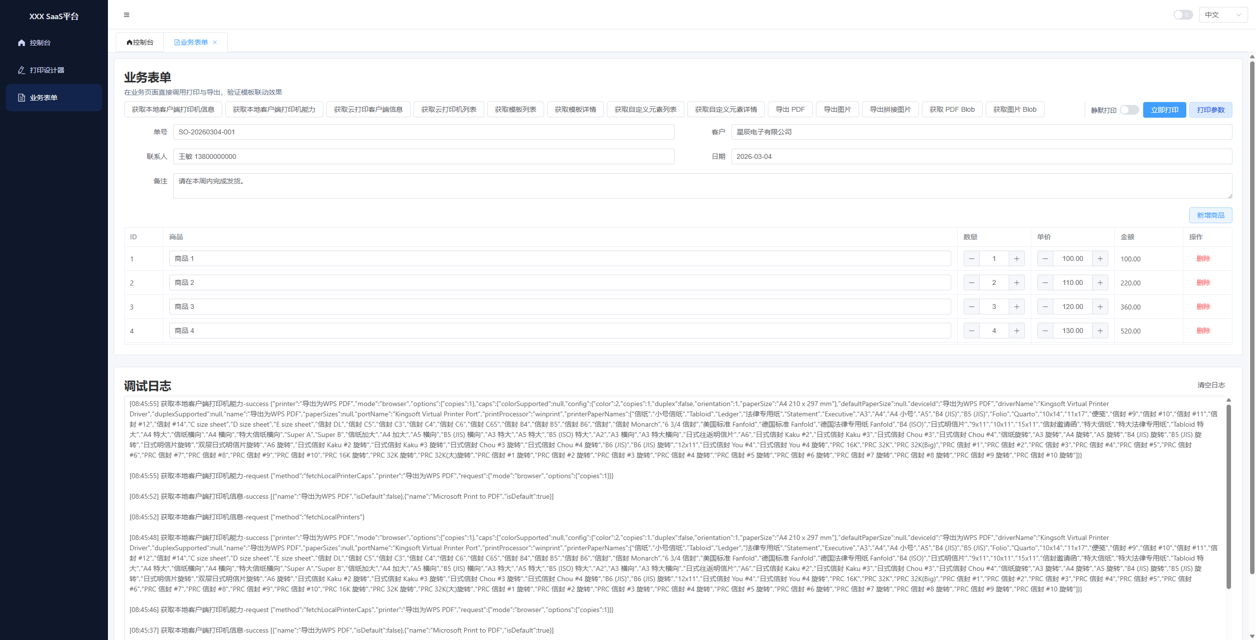 工程化完备:不仅是打印,更提供静默打印、云打印、PDF/图片导出及精细的打印参数控制。
