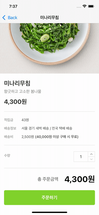 - 수량에 따라 총 주문 금액이 자동으로 업데이트 된다.