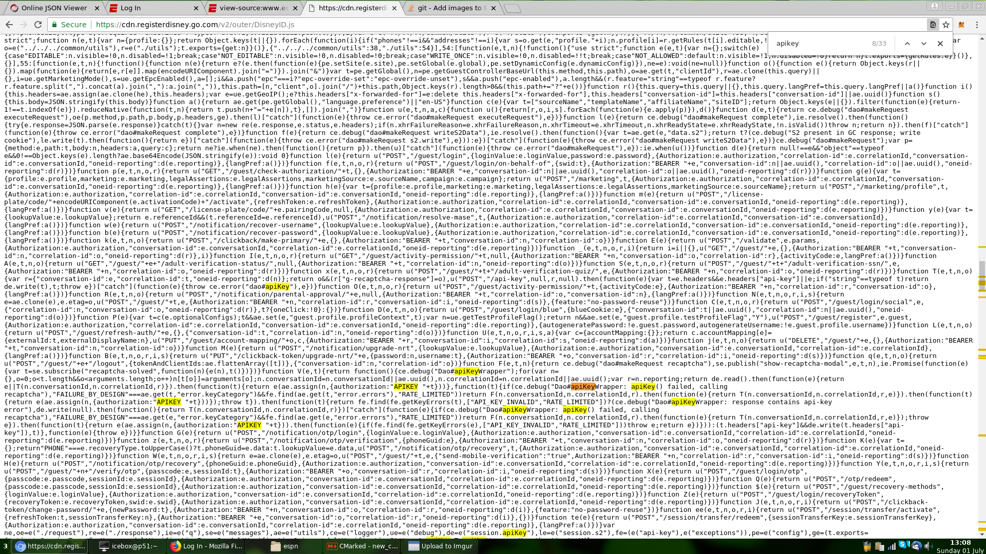 Shows that the APIKEY is created from that file, but it's minified and obfuscated, to make it harder to read.