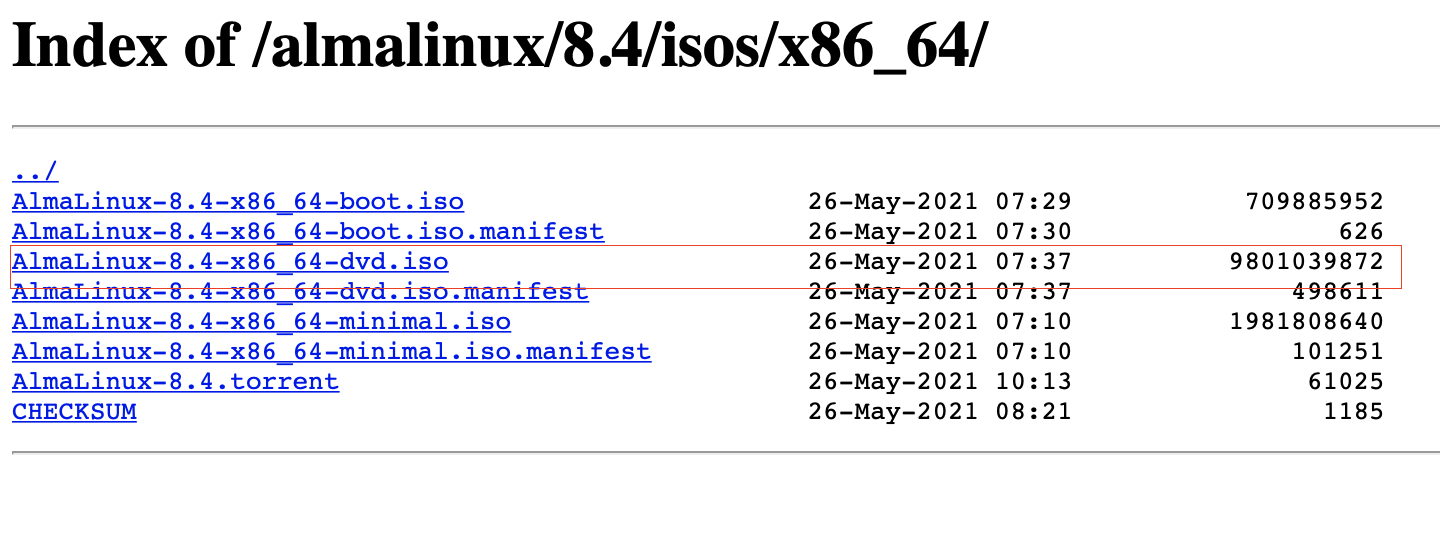 Pour l’installation d’Alma Linux ne pas oublier de prendre l’ISO en version DVD « sinon la source d’installation ne sera quant à elle pas présente. «
