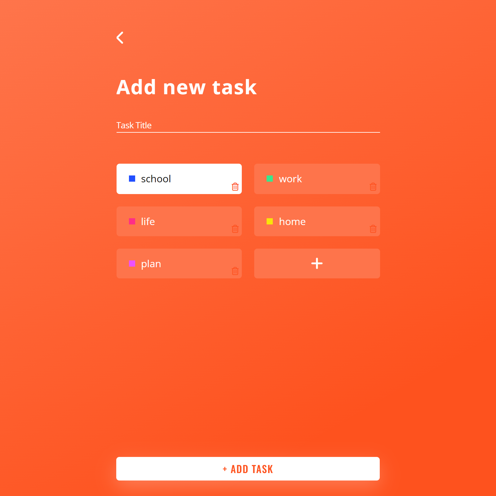 To add a task to a to-do list, click the "Add Task" button. Enter a name for the task, chose category and click the "+ ADD TASK" button.