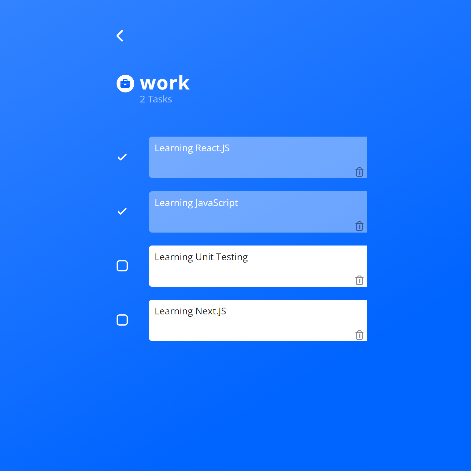 To delete a task, click the trash can icon next to the task.