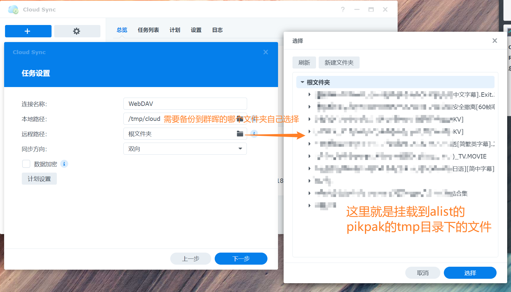 pikpak挂alist,群晖可以连alist的webdav,就可以备份了