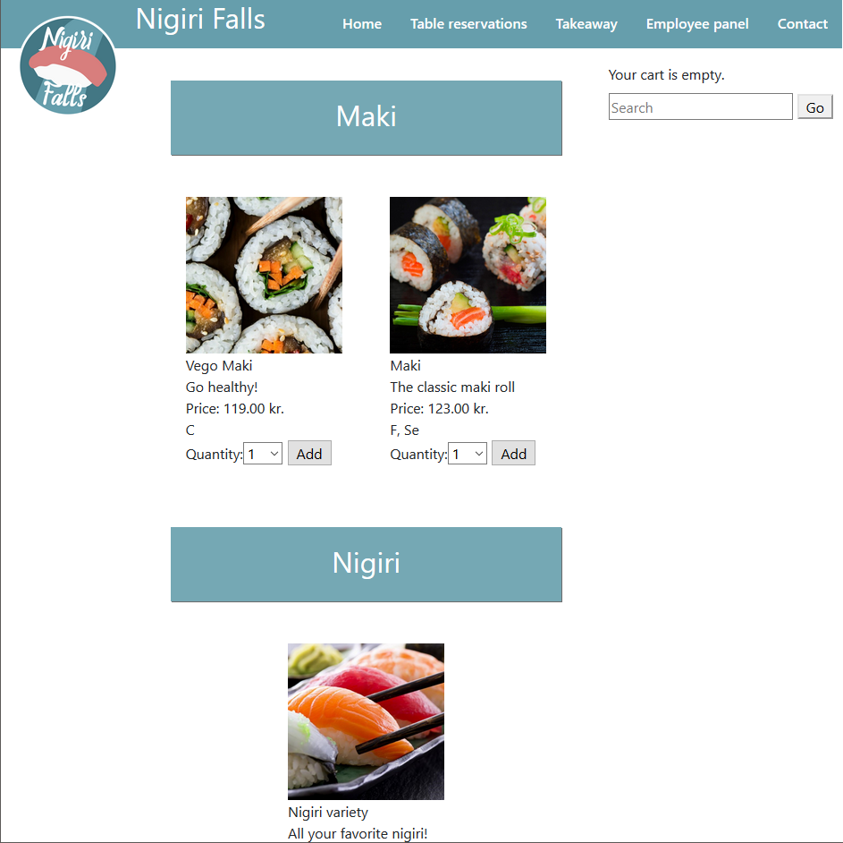 This project was started to create a complete takeaway ordering system for the sushi restaurant Nigiri Falls. It is meant to be user friendly, international and universally adaptable.