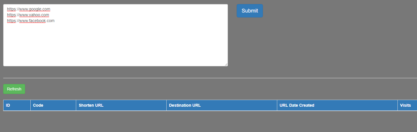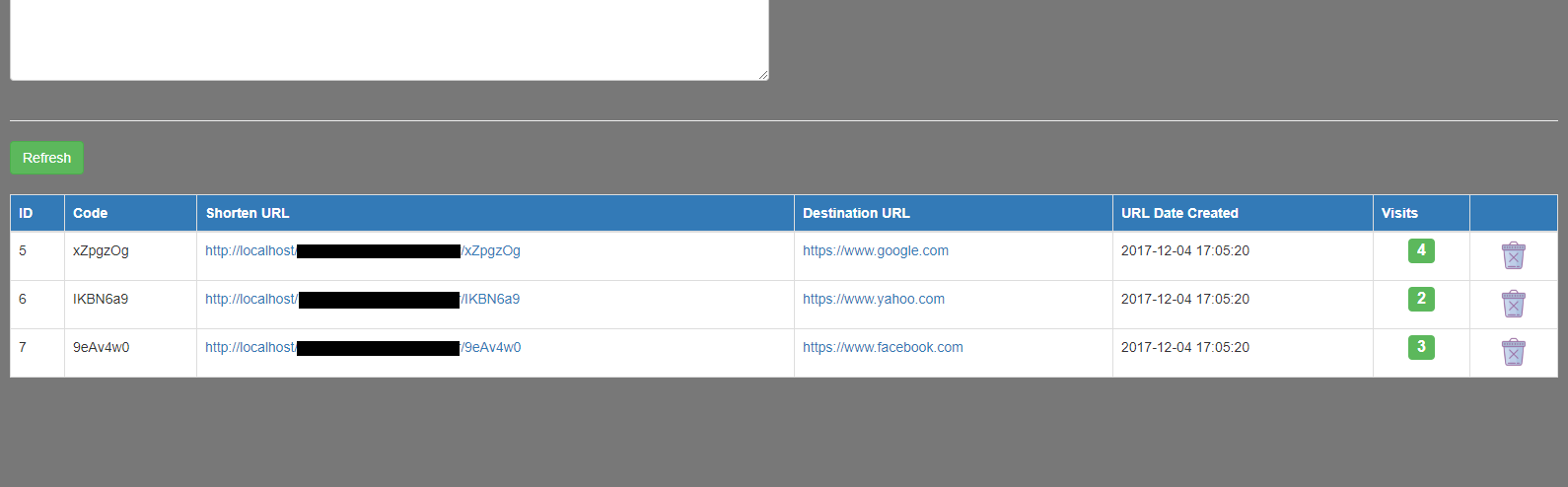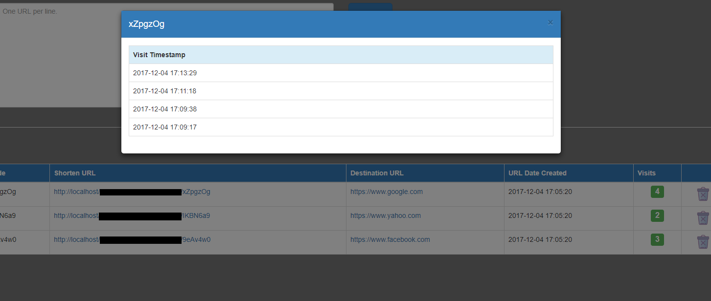 Web application for shortening URLs. Shortened URLs can be deleted but not edited. URL visits are also tracked (how many times URL is visited). In summary, this app is a good starting point if you want to develop full web app for shortening URLs.