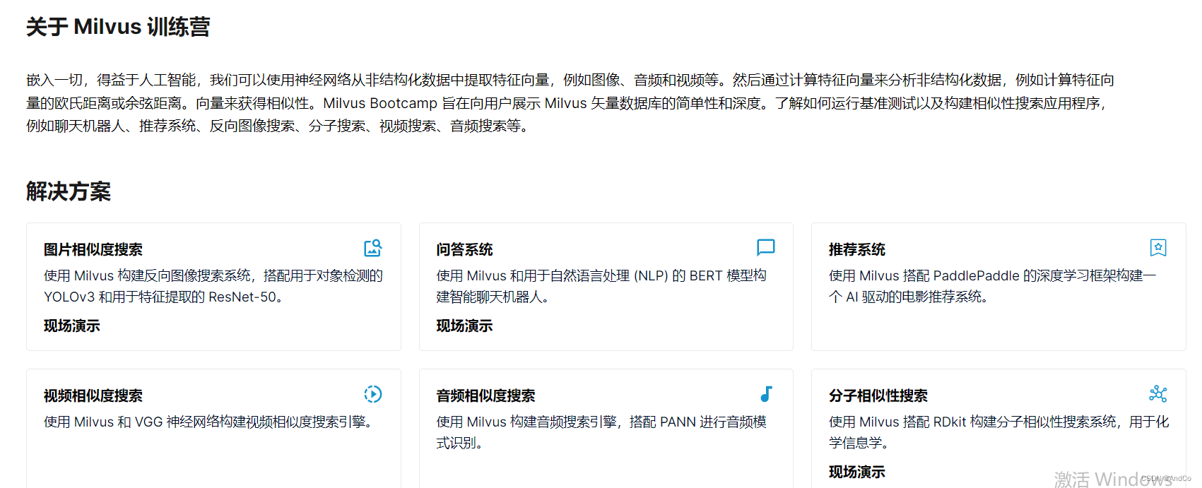 Milvus Bootcamp 提供了很多解决方案 ,https://milvus.io/bootcamp/