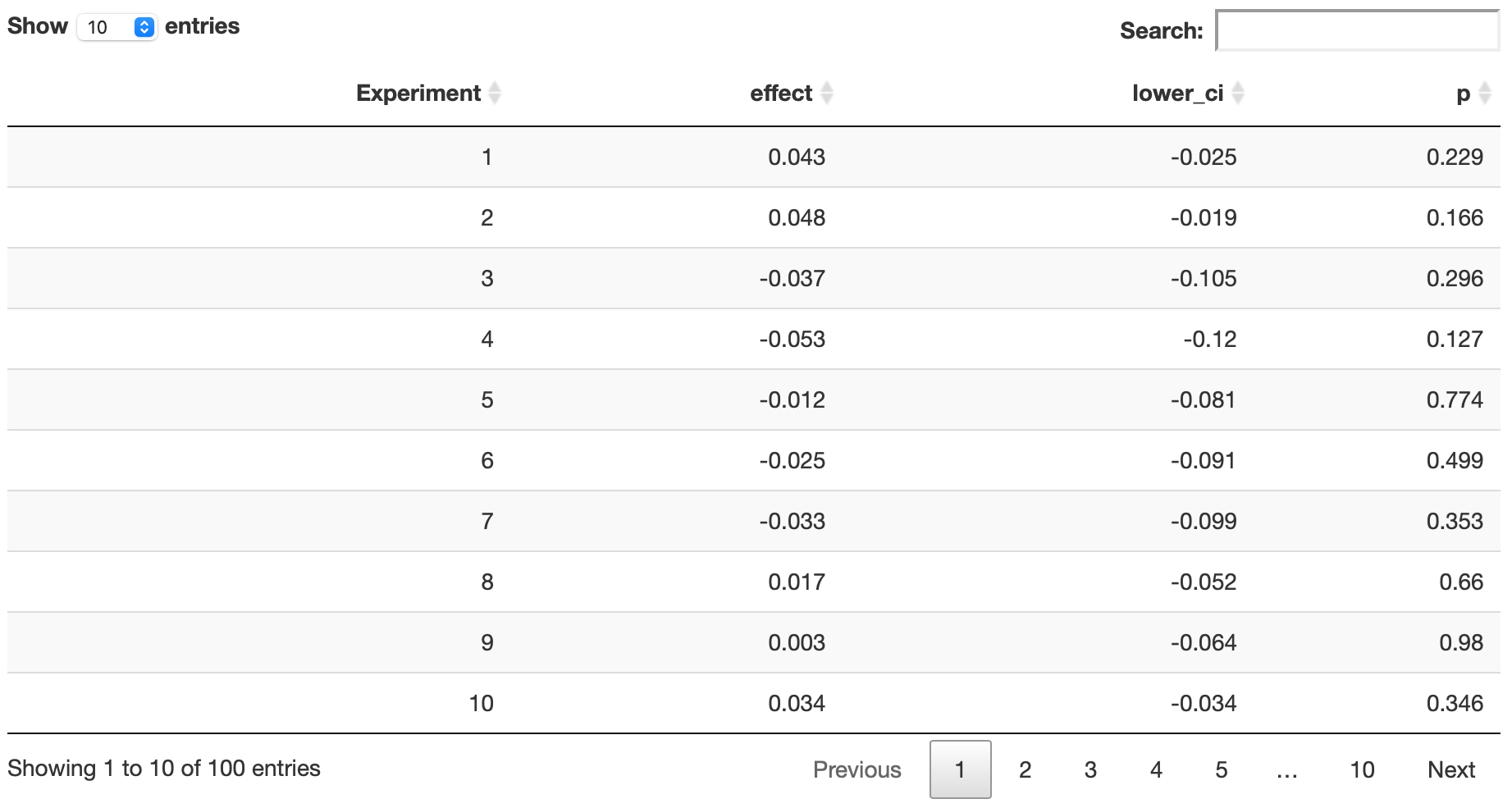 DT::datatable(data = round(x = exp.results[1:100, ], digits = 3),