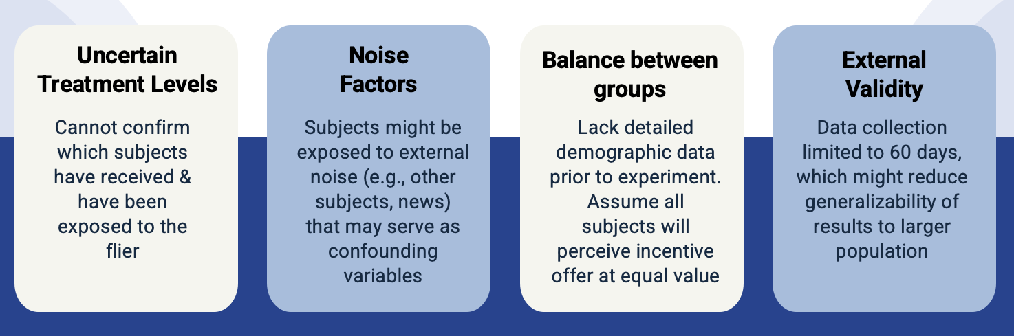 Alternative Hypothesis: The proportion of participants who get at least one dose of the COVID-19 vaccine will not be the same between the control group (defined as participants who were mailed a flyer without an incentive) and the treatment group (defined as the participants who were sent a flyer with an incentive)