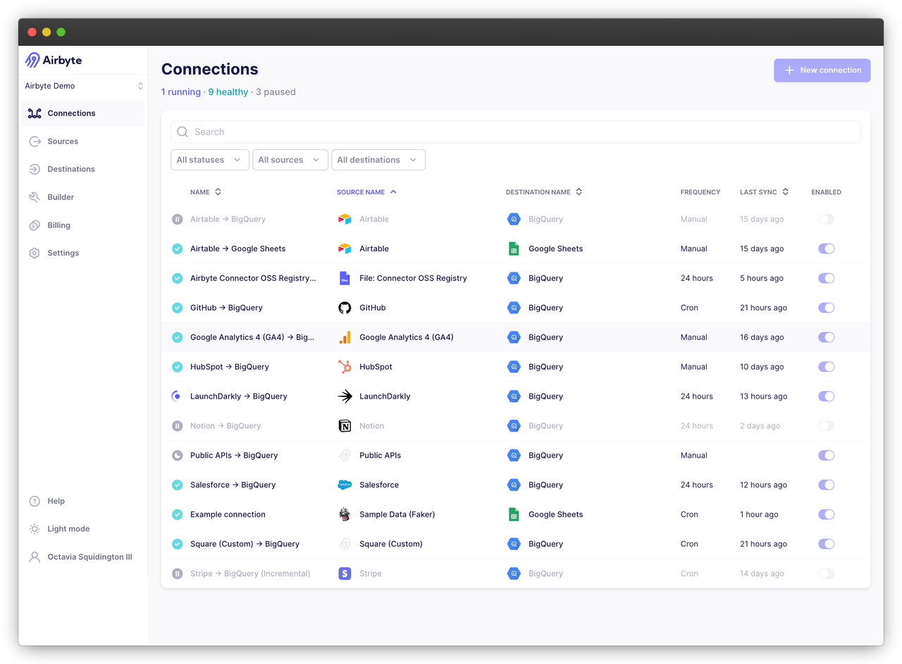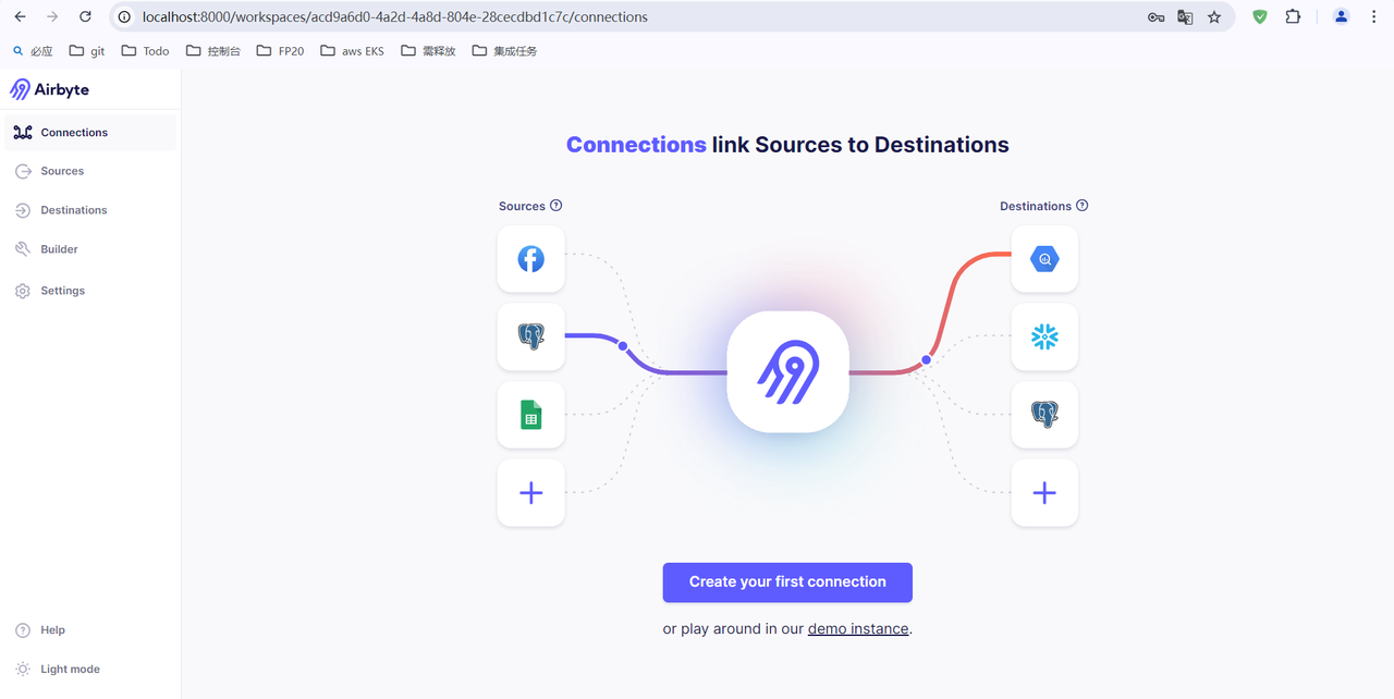 After entering the username and password, you will see the Airbyte workspace. Using this interface, you can easily set up and manage all connections and move data!
