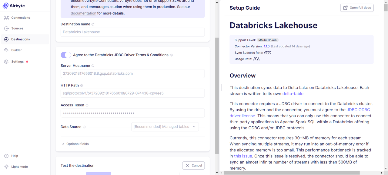 Data Destination (Data Warehouse): In this case, I've chosen a cloud-deployed Databricks [3] cluster.