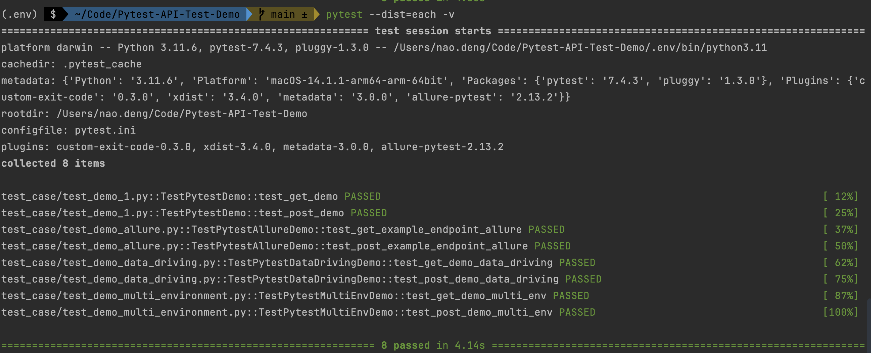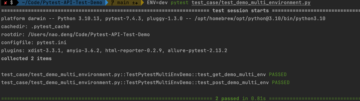 ENV=dev pytest test_case/test_demo_multi_environment.py- Run the prod environment test case