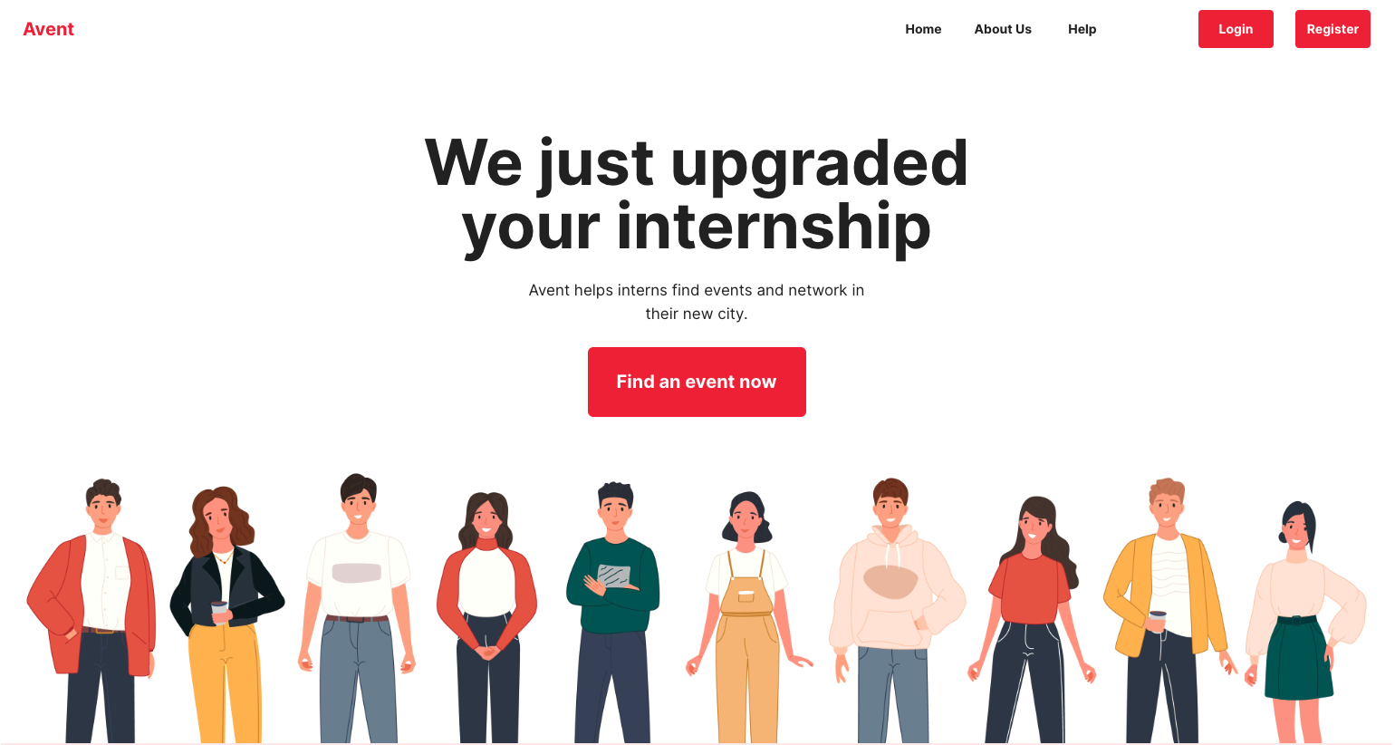 Avent is an app designed to help interns find events that are relevant to their interests. The app allows users to search for events by keyword and location. Event listings include information about the event, such as the host, location, time, and description. Avent also allows users to RSVP for events and create their own events to share.