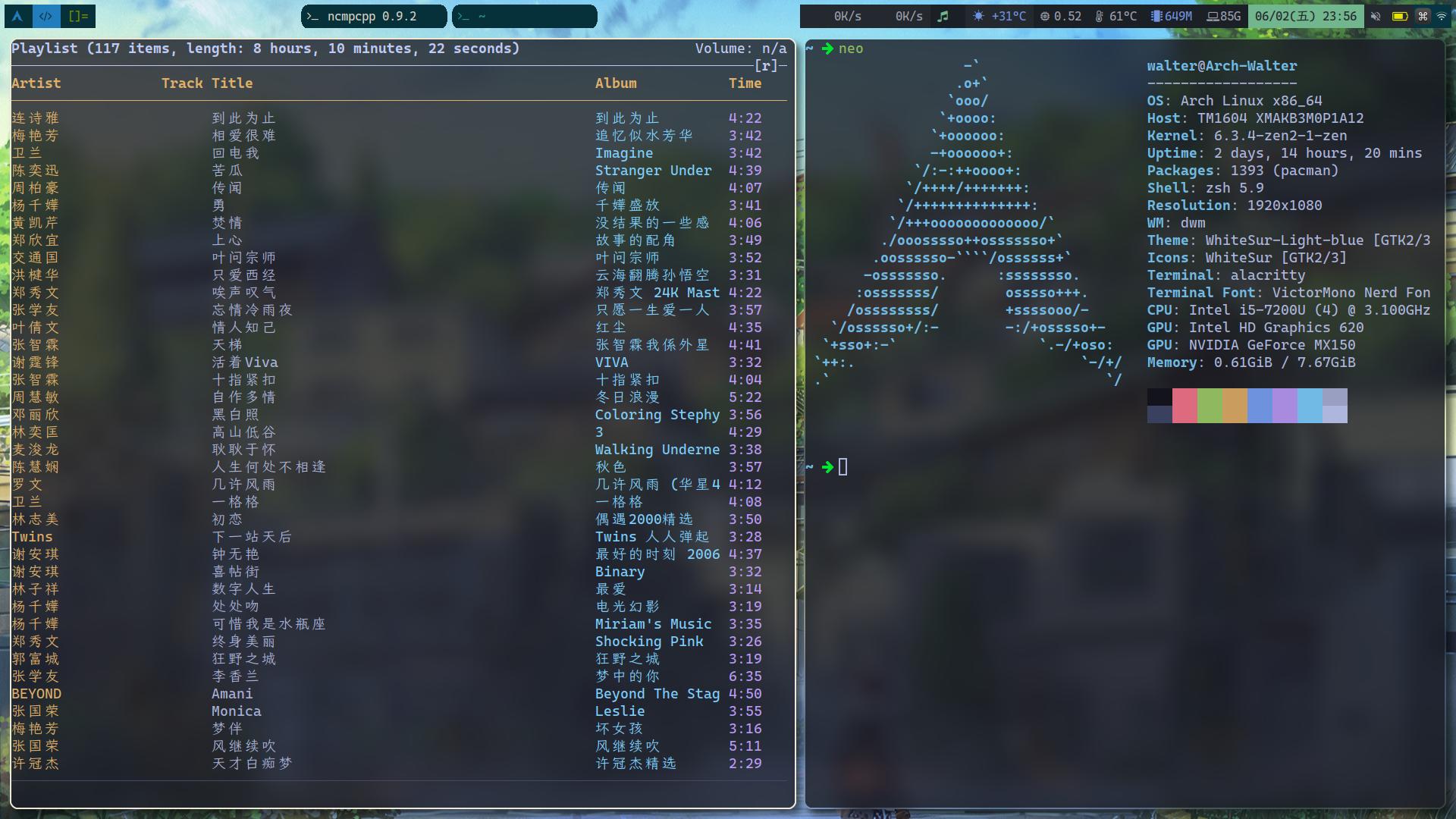 Tips: 配合 Dwm 运行的大量 shell 被存储在scripts中,建议完整阅读文档并安装依赖,在安装本库 Dwm 配合使用