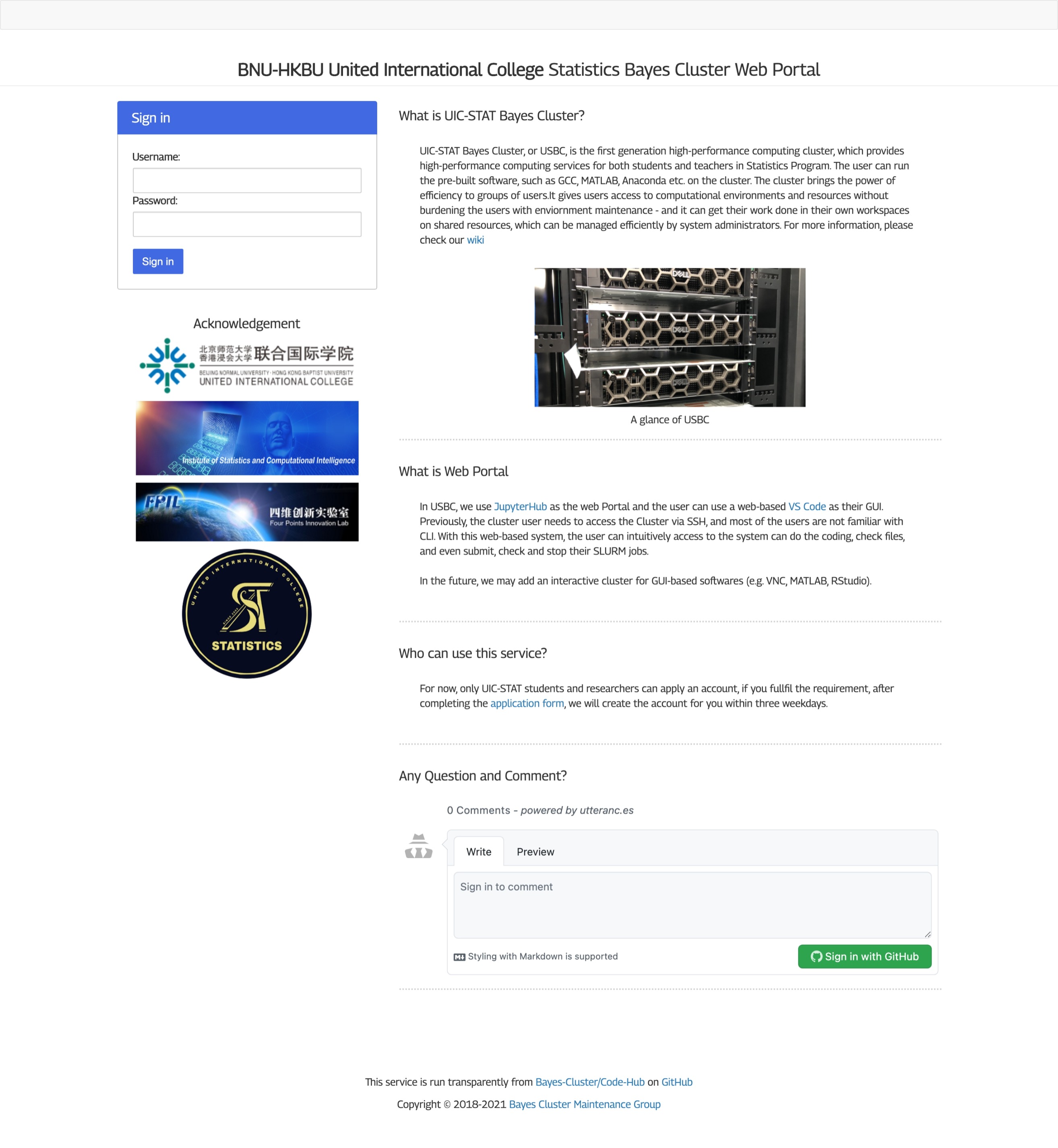 Code-Hub, is a intergrated web application for USBC cluster, which allows user to upload, modify and delete files, also submit, hold, kill SLURM jobs. Which decrease the dependence of prior knowledge in Linux and HPC. The goal of this web application is to form a cohesive set of tools that enable: