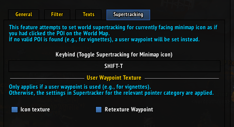 - (Optional) Enable using the minimap icon’s texture and retexture Supertracker.