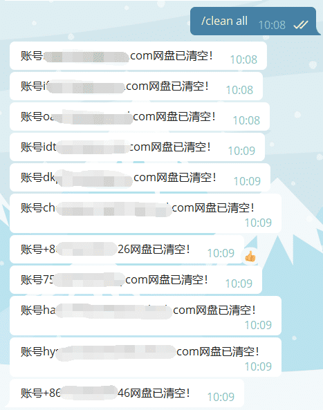 清空指定账号的网盘 | /clean account1 [account2] [...] |