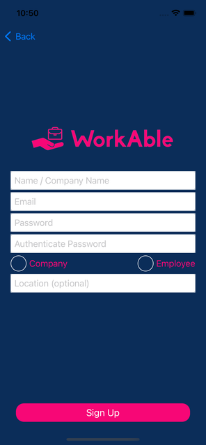 This app is created with Swift to iOS platform using Firebase. Users can sign up as a company or employee, see available opportunities, and apply for them.