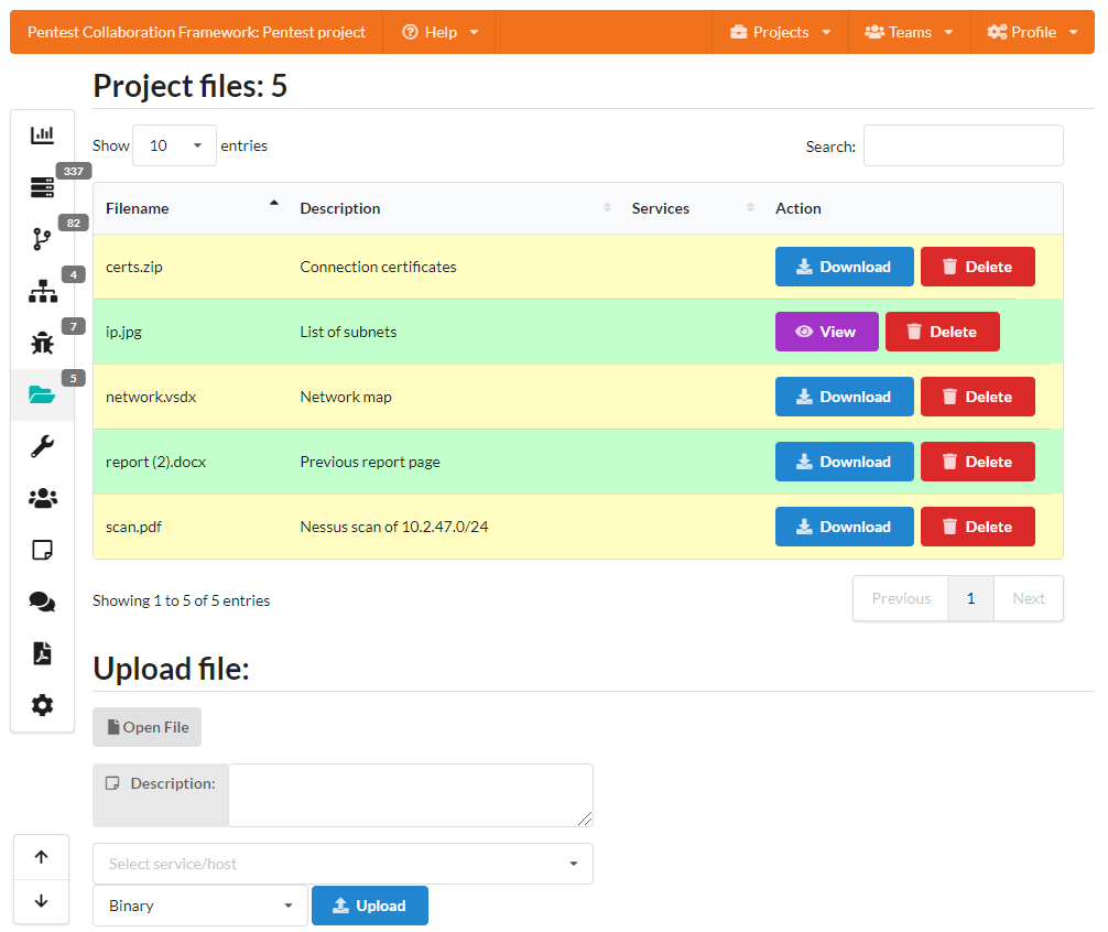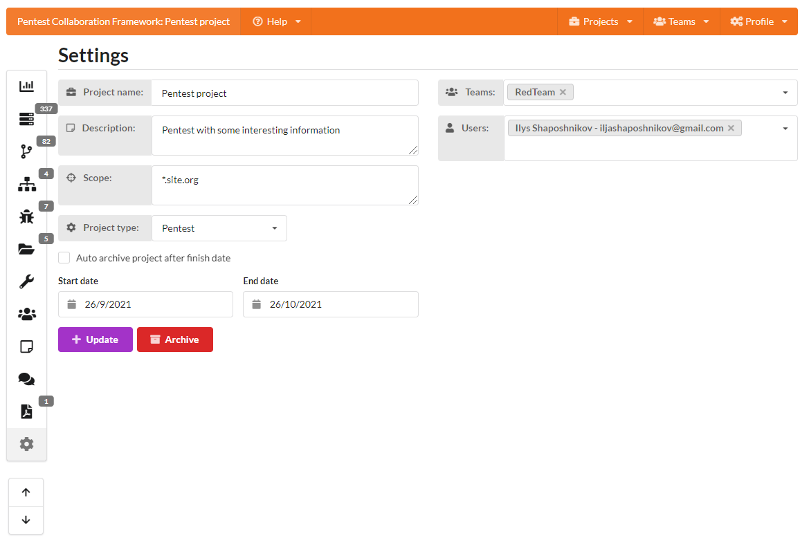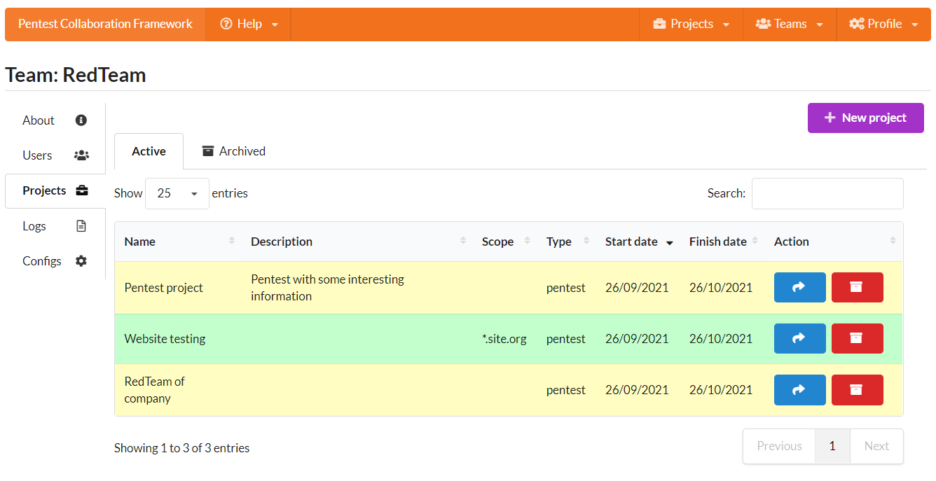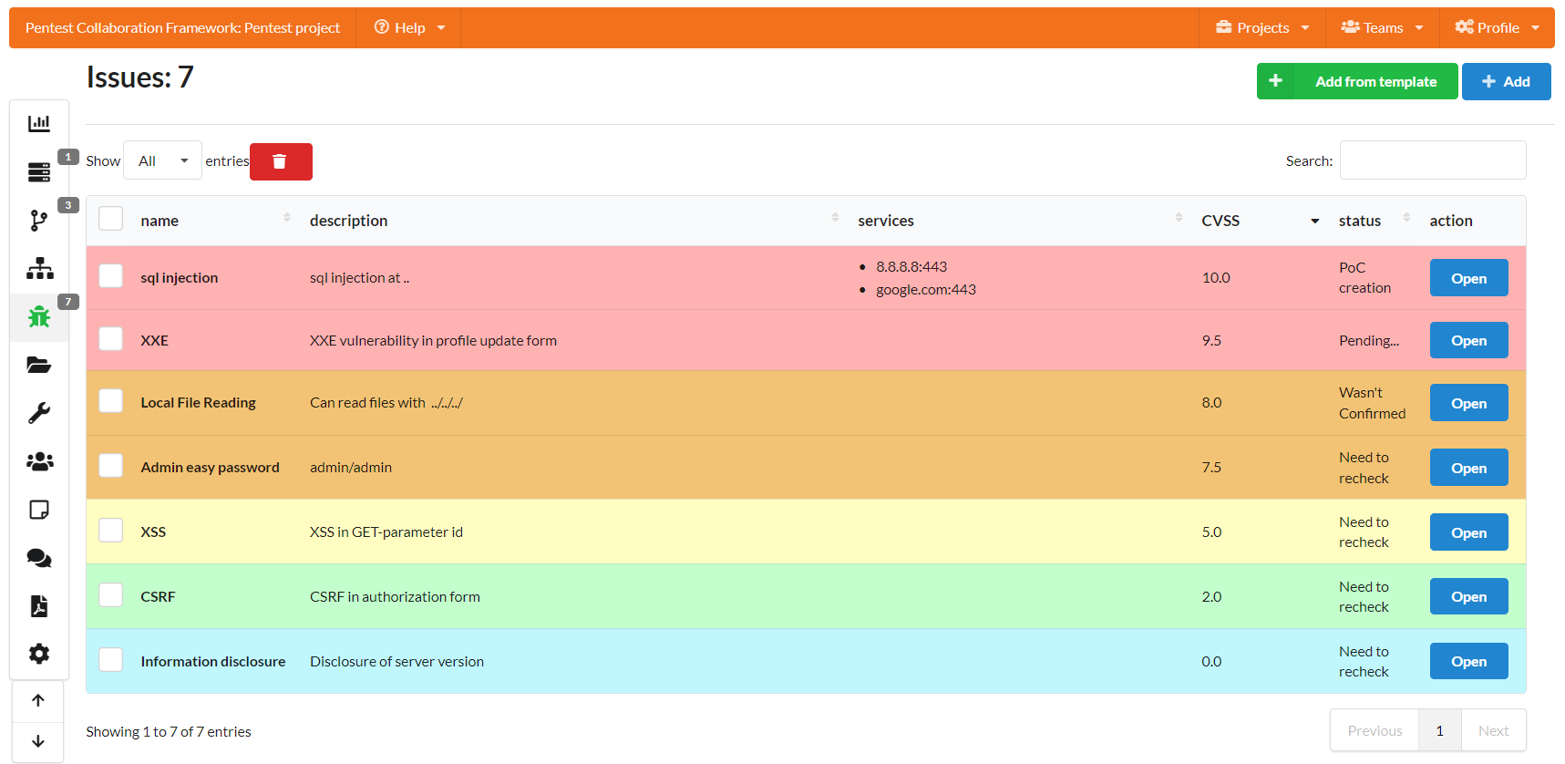 | Name | PCF | Lair | Dradis | Faraday | AttackForge | PenTest.WS | Hive |