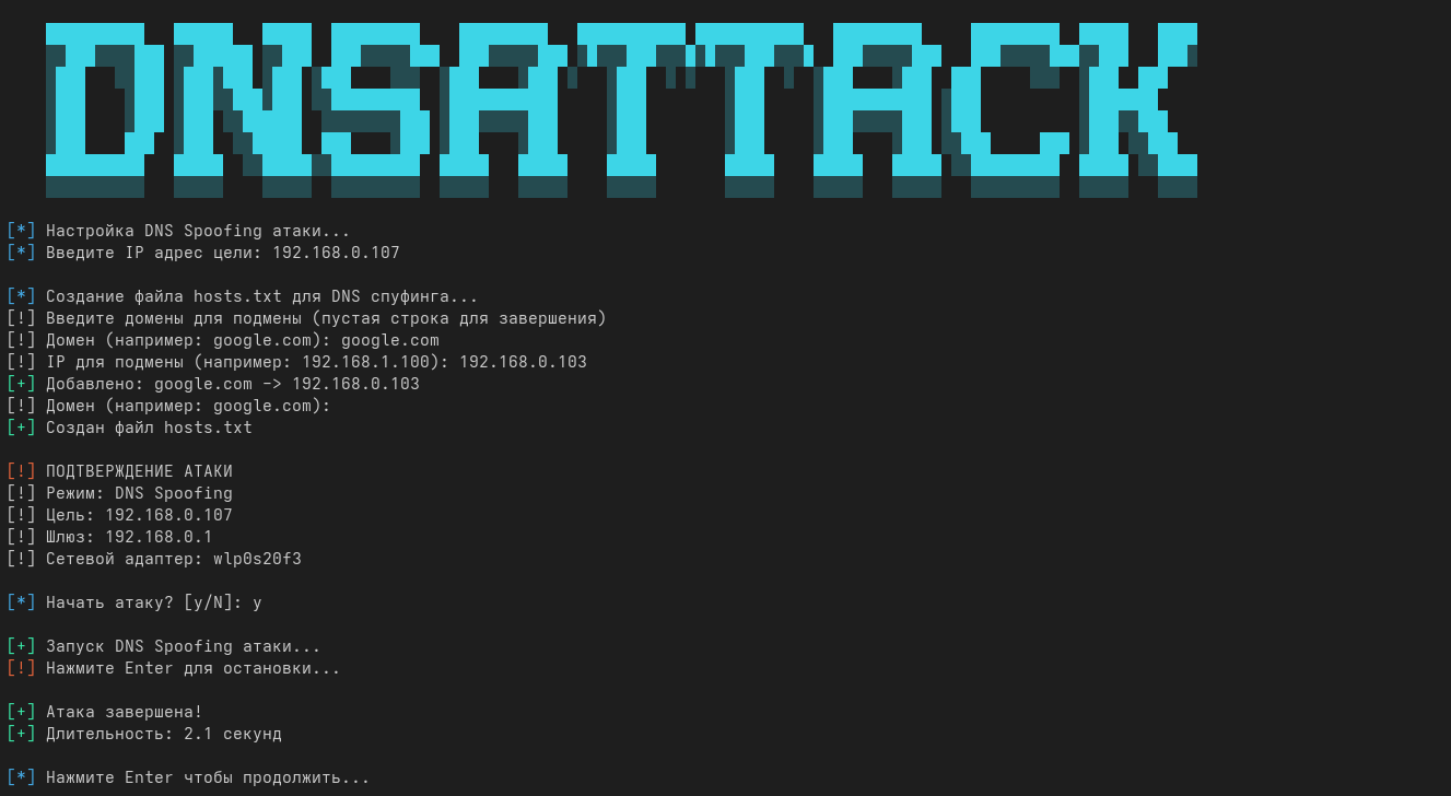 │ └── DNS.py # Модуль DNS спуфинга