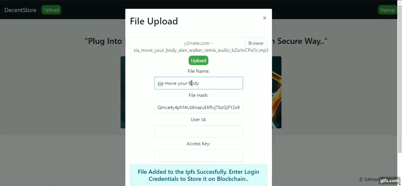 All uploaded file hashes will be mapped to particular user on blockchain (hyperledger fabric)