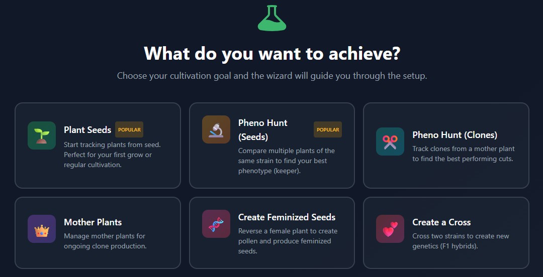 A complete grow journal, strain library, breeding planner, and phenotype analysis tool — all in one place.