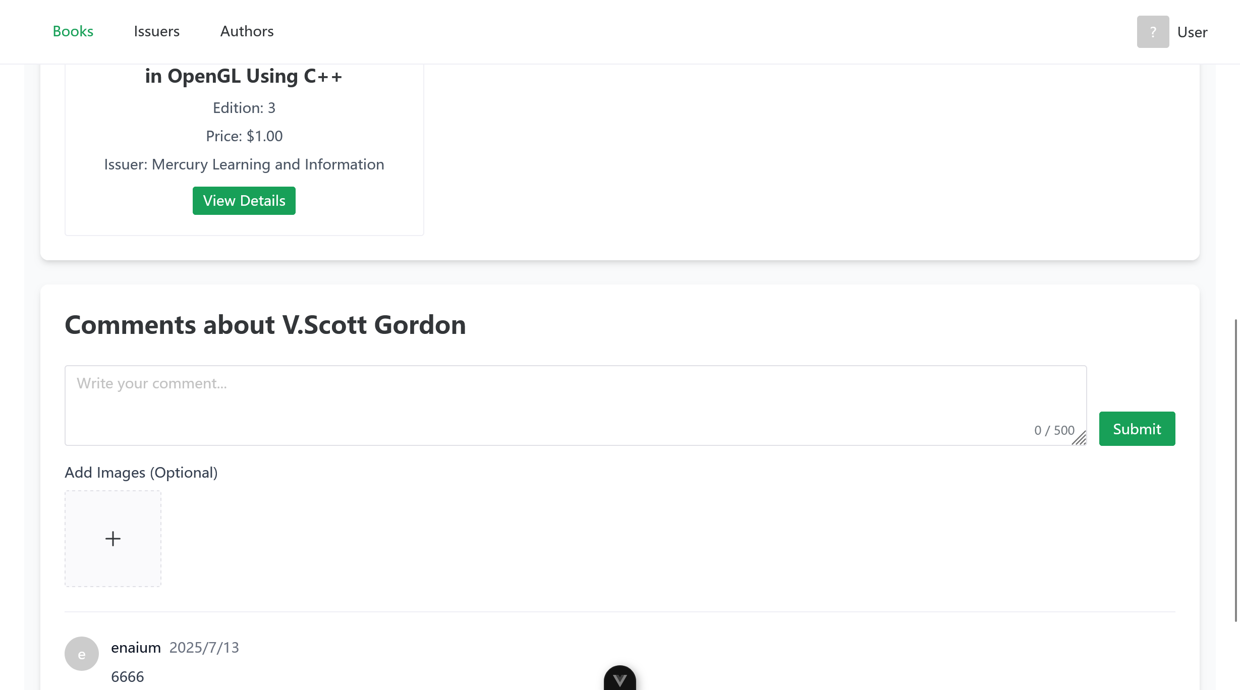 - Comments & Reviews: Multi-level comment system for books, authors, and publishers