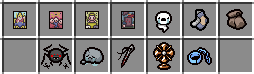 The plugin's items can drop from mobs with a configurable frequency, but this can also be disabled in order to issue items only with a command. I would also like to say that not all items can be completely transferred from The Binding of Isaacs to Minecraft, even with the use of resource packs, so not all items have exactly the same functionality. Below is a list of items and their descriptions: