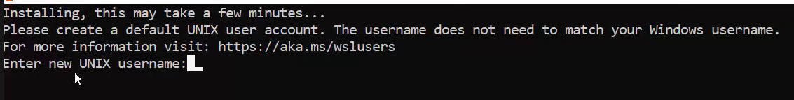 Enable-WindowsOptionalFeature -Online -FeatureName Microsoft-Windows-Subsystem-LinuxUnha vez executado este comando xa podemos abrir a aplicación de Ubuntu 20.04 para probar que todo funciona correctamente e que non nos da erro ao abrir o programa. Se esto ocorre deberíamos obter unha saída parecida a esta: