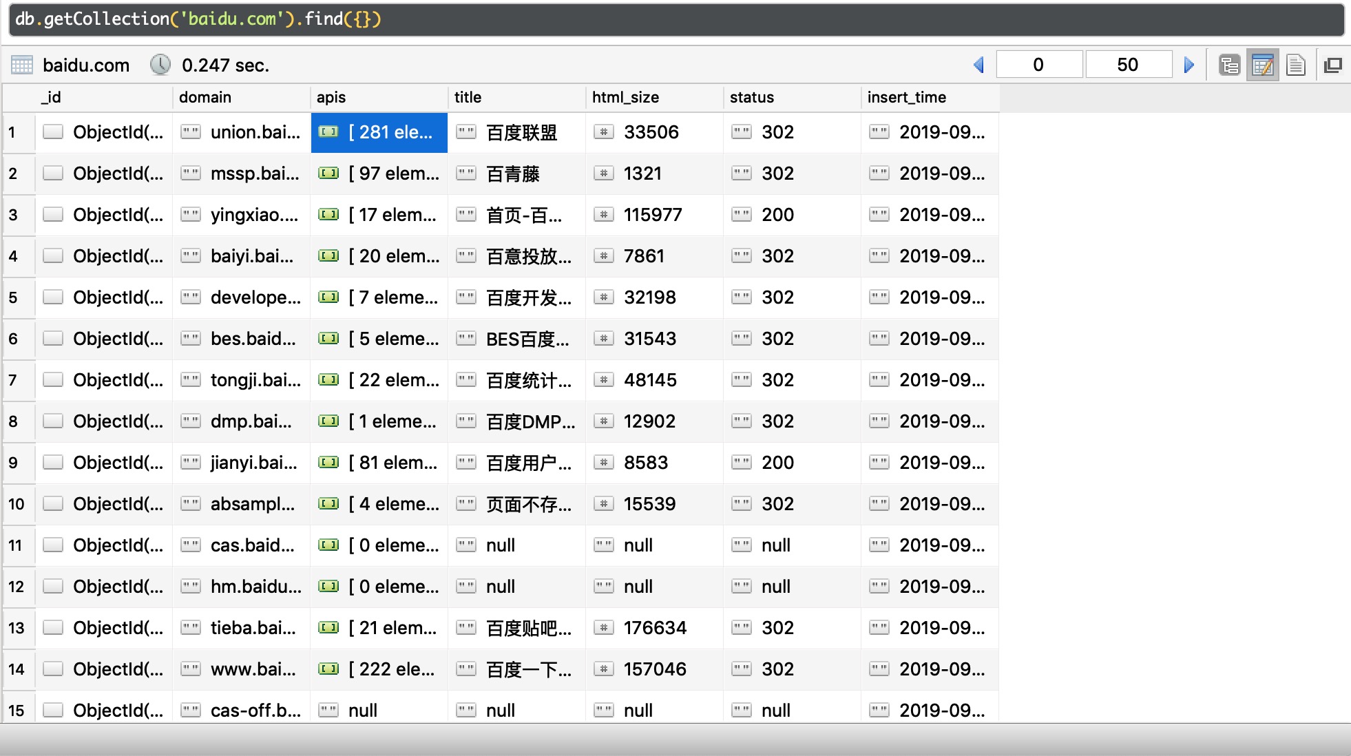 获取每个域名主页相应的title、状态码、html大小并入库存储