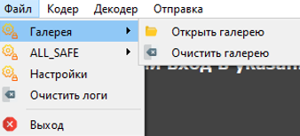 «Открыть Галерею», открывает галерею криптора, где лежат сохранённые вами, расшифрованные файлы