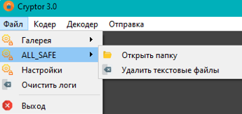 «Очистить Галерею», очищает все файлы, которые находятся в галерее криптора
