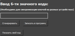 Кнопка «Показать свой код», вывод в пустое поле код синхронизации, который установлен в вашей программе