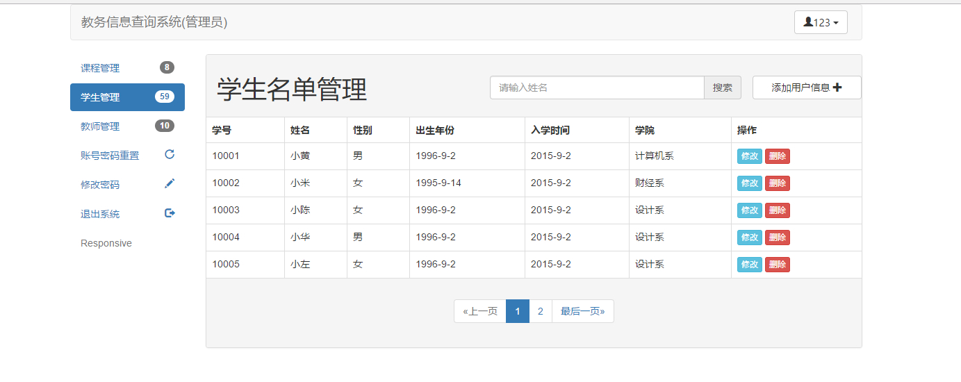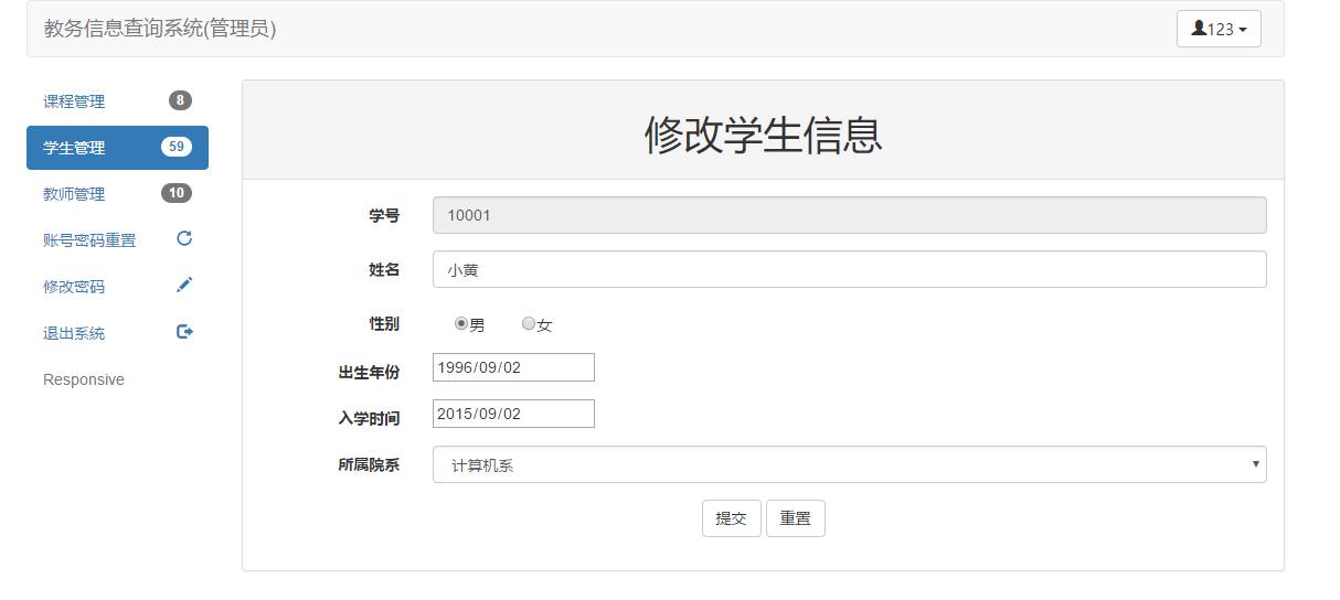 管理员可对 教师信息、学生信息、课程信息 进行 增删改查 操作,管理员账户,可以重置非管理员账户的密码