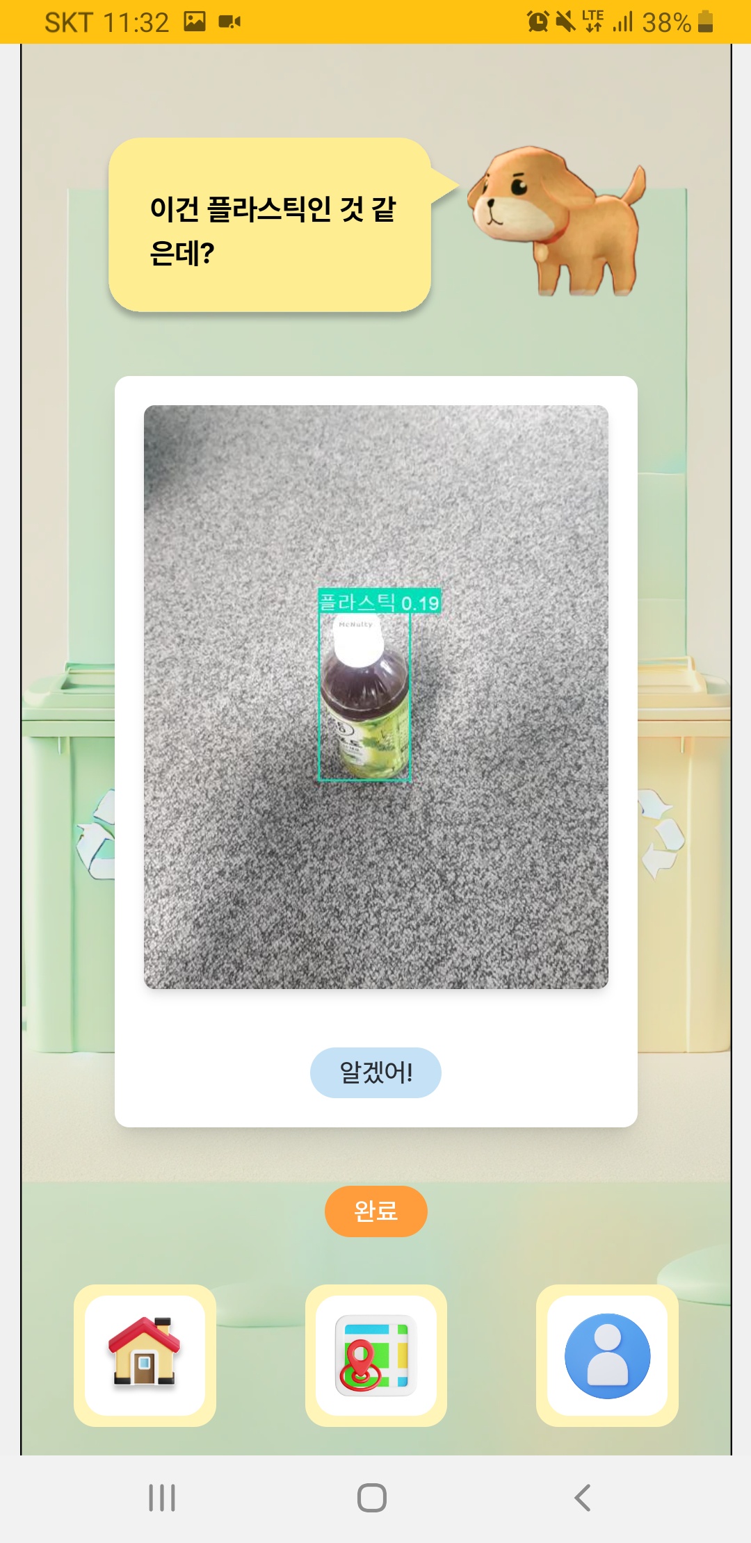 - 아이가 재활용 쓰레기를 촬영하면 AI를 통해 학습한 결과로 분류방법을 안내합니다.