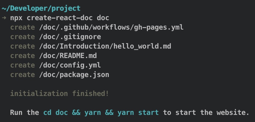 , 比如执行npx create-react-doc .