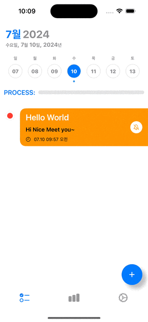 }OnAppear과OnChange에서task의 알림여부와task의 현재시간과 현재 날짜가 같은지 검사하고, 같다면 알림을 전송하게 했다.