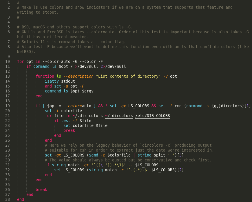 - Compatibility highlighter: Code that is incompatible with the targeted version of fish is outlined.