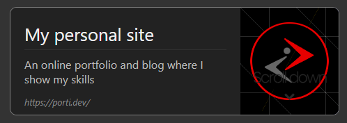 <Tags.Url src="https://porti.dev/" title="My personal site" description="An online portfolio and blog where I show my skills"/>This widget can hold content and display it as a popup on click event