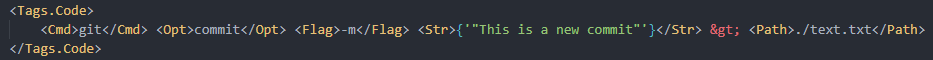 <Cmd>git</Cmd> <Opt>commit</Opt> <Flag>-m</Flag> <Str>{'"This is a new commit"'}</Str> > <Path>./text.txt</Path>