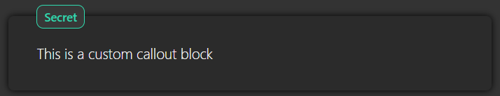 <Tags.Callout label="custom" labelData={{text: "Secret", color: "#25AA88", style: ["font-weight: 500;", "filter: brightness(130%);"]}}>