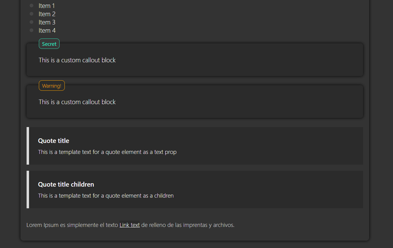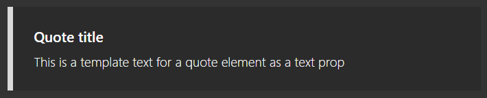 <Tags.Quote title="Quote title" text="This is a template text for a quote element as a text prop" />