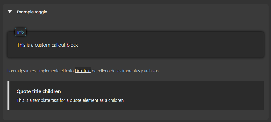 <Tags.Quote title="Quote title children">This is a template text for a quote element as a children</Tags.Quote>