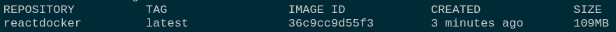 輸入完命令之後會建立 docker image 名稱為 reactdocker