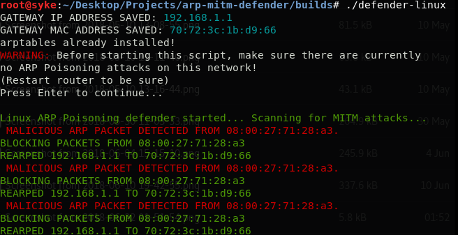 ARPPD protects your PC against Man-In-The-Middle (MITM) attacks. This is a script written in C to provide protection against malicious ARP attacks, which changes the gateway's MAC Address in the ARP table of a victim's PC.