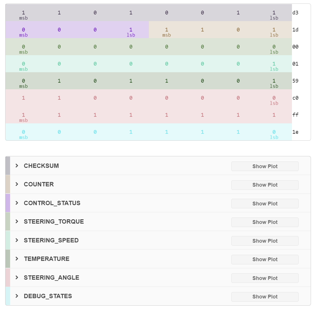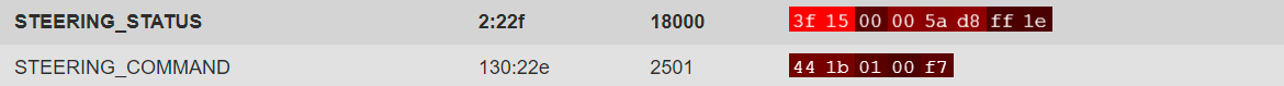STEER_MODE 0 "Off" 1 "TorqueControl" 2 "AngleControl" 3 "SoftOff" ;SoftOff is a safe state that all steering actuators ideally should implement t satisfy some basic safetyDRIVER_TORQUEmoved to a separate message because almost certainly this wouldn't be ever sent by the motor actuator controller. I don't know if anyone uses it.Cabana view: