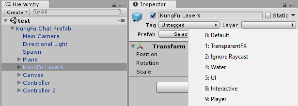 - Put the KungFu Layers GameOject in the Default layer, but I recommend making a specific layer just for the game