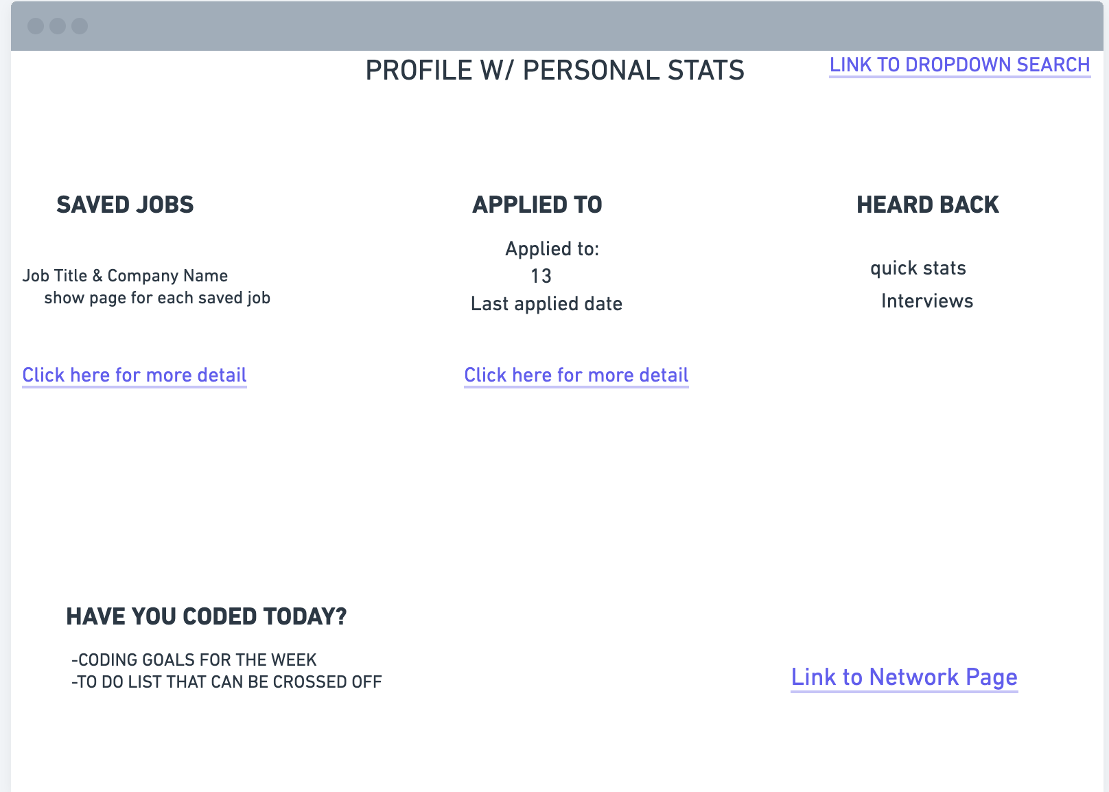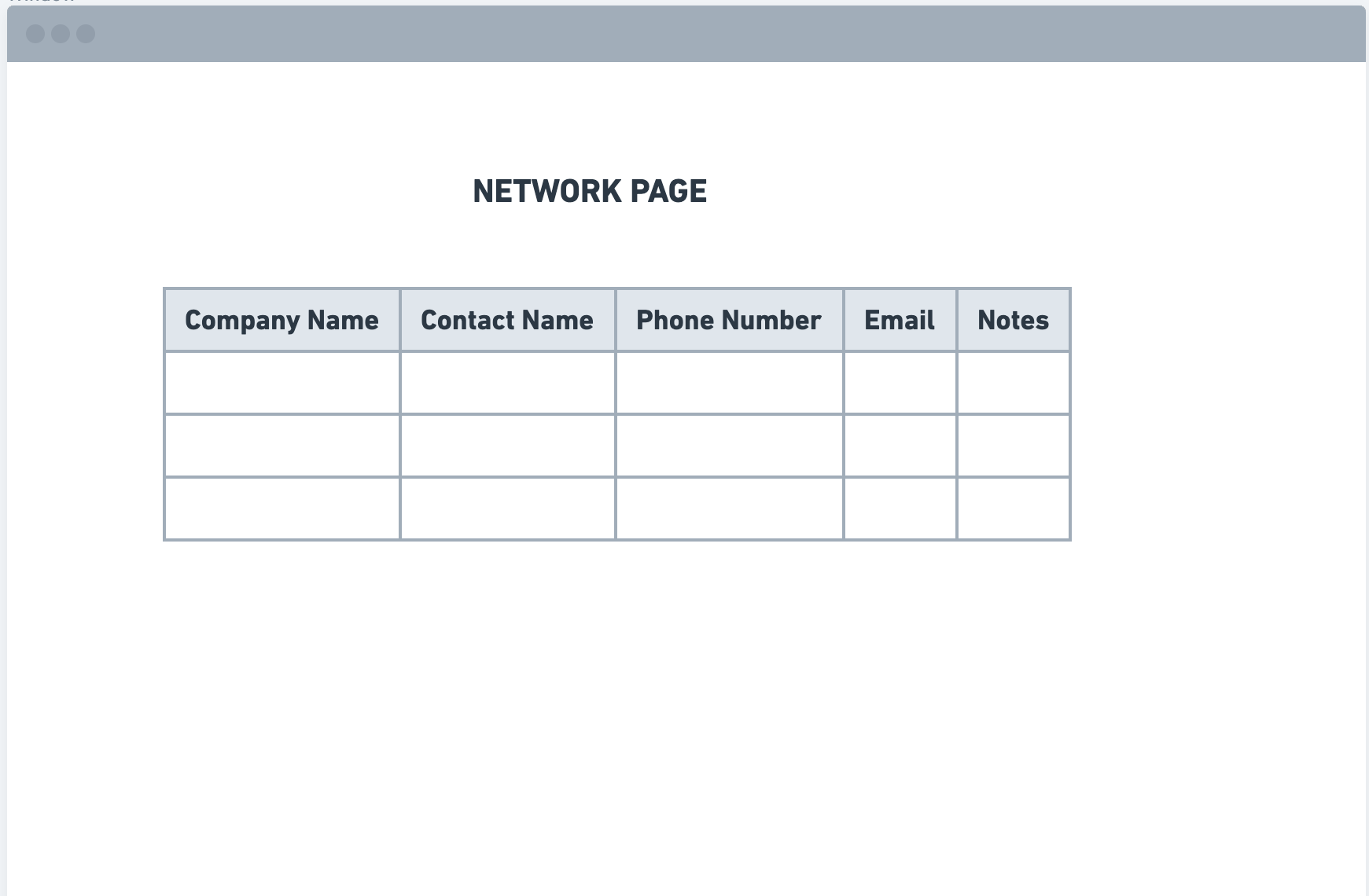 In addition, our application helps the user stay organized and track their progress. We have incorporated a to-do list that manages their weekly tasks and goals. Lastly, the network dashboard allows the user to keep track of their contacts and growing professional network.