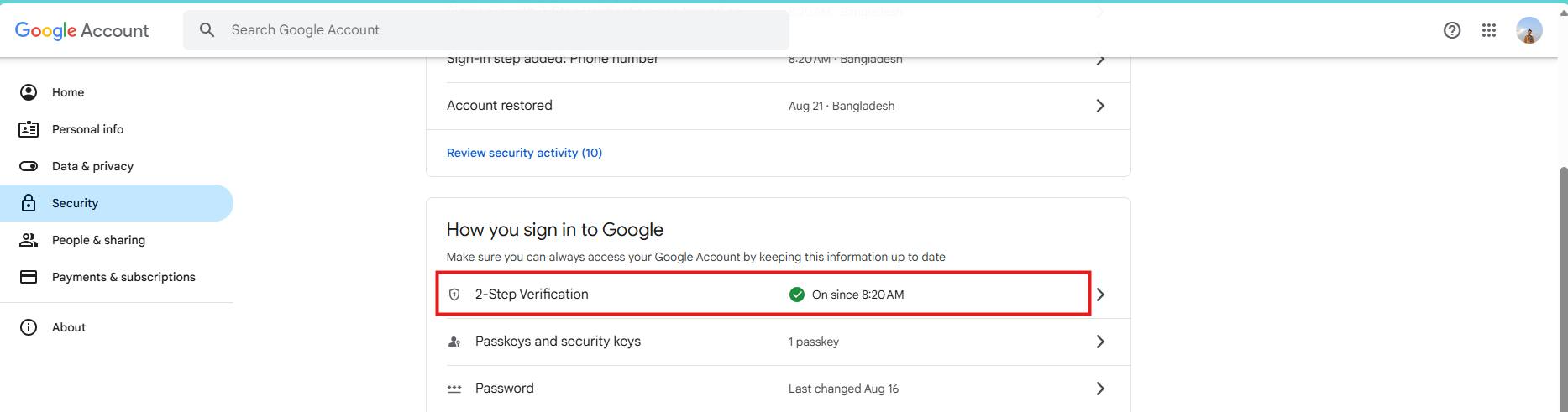 - If you enabled a 2FA method, complete one of: