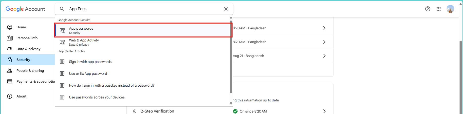 OR, visit: https://myaccount.google.com/apppasswords