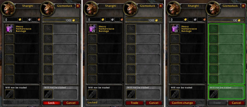 - In locked mode, make sure everything looks OK then click Trade to complete the deal.
